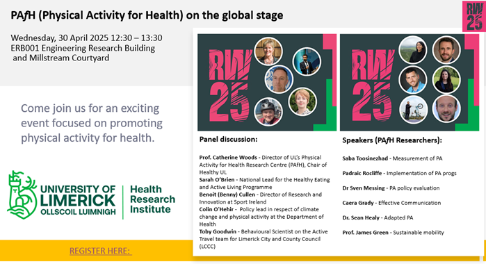 📅 Date: Wednesday, 30 April 2025 🕛 Time: 12:30 – 13:30 📍 Location: ERB001 Engineering Research Building and Millstream Courtyard We are thrilled to invite you to a special event focused on promoting physical activity for health. This event will feature a panel discussion with leading experts and researchers from the University of Limerick. Don’t miss this opportunity to learn from…